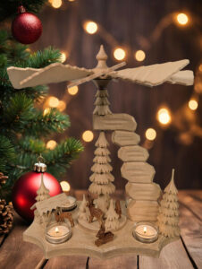 oder auch moderneren Designs (LED-Beleuchtung, liebevolle Bestückung mit individuellen Figuren, …). Anstatt echter Kerzen werden elektrische Varianten immer beliebter.